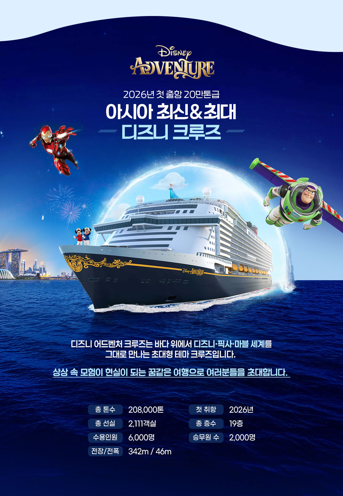 【항공권+크루즈/자유일정】 싱가포르 디즈니 어드벤쳐 크루즈 6일(DISNEY & 티웨이항공)