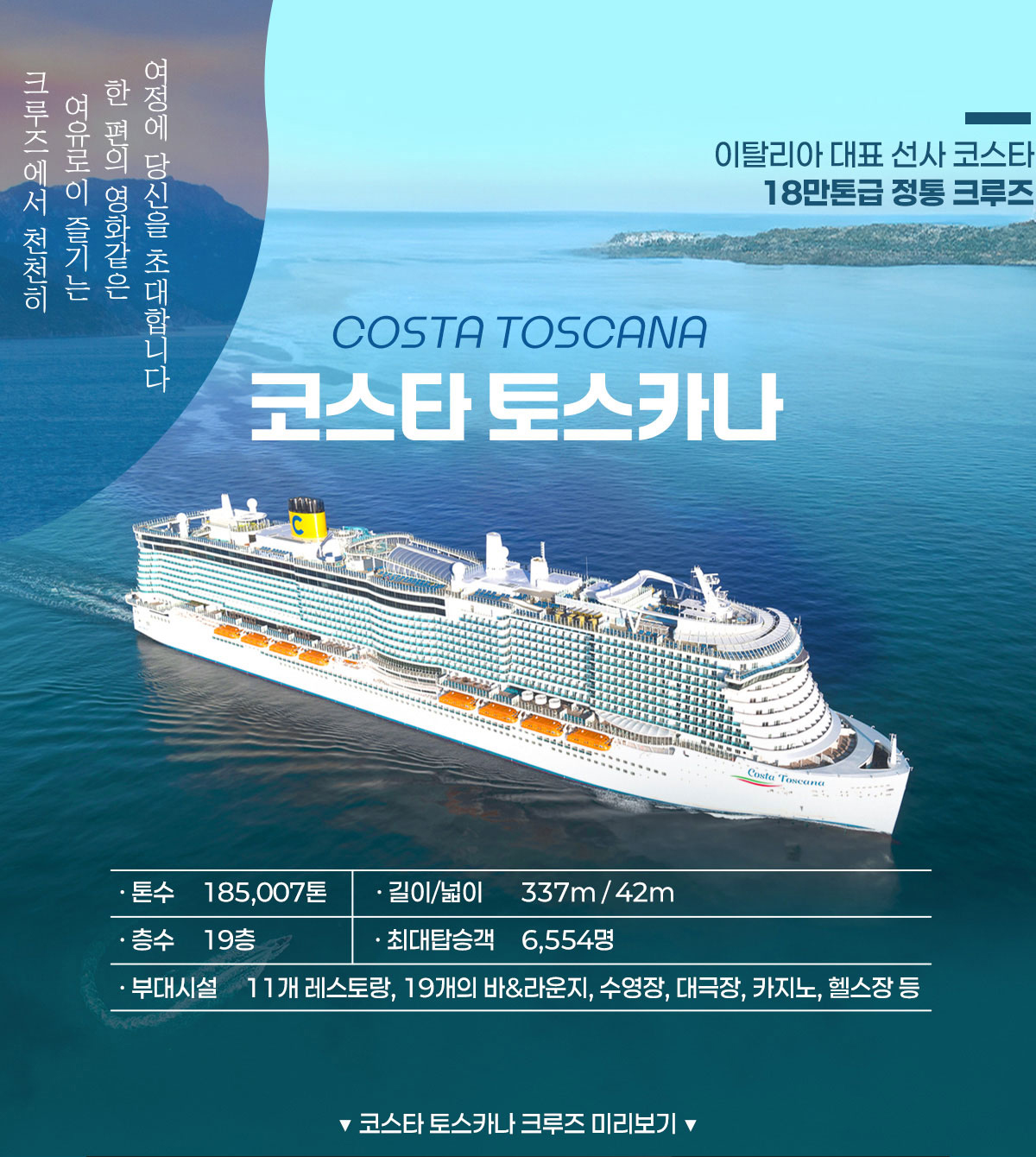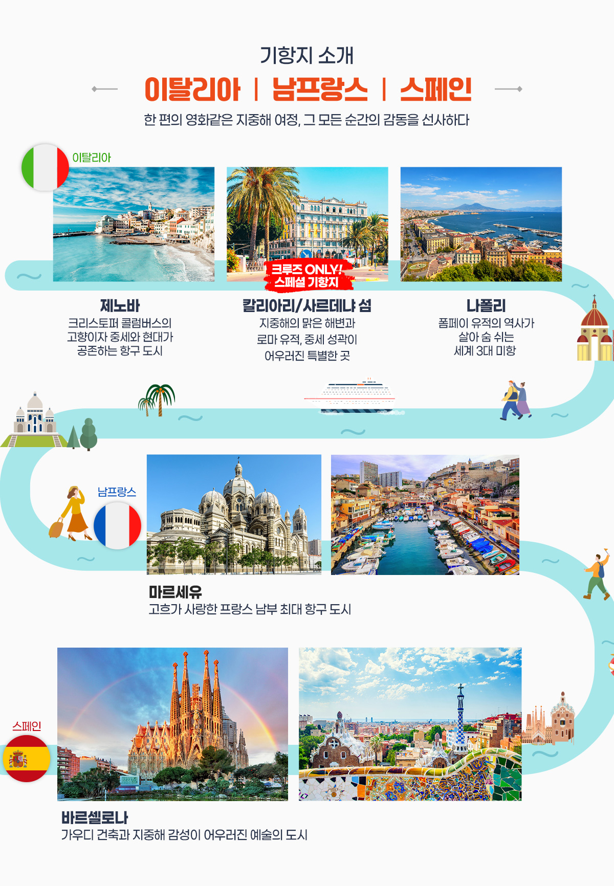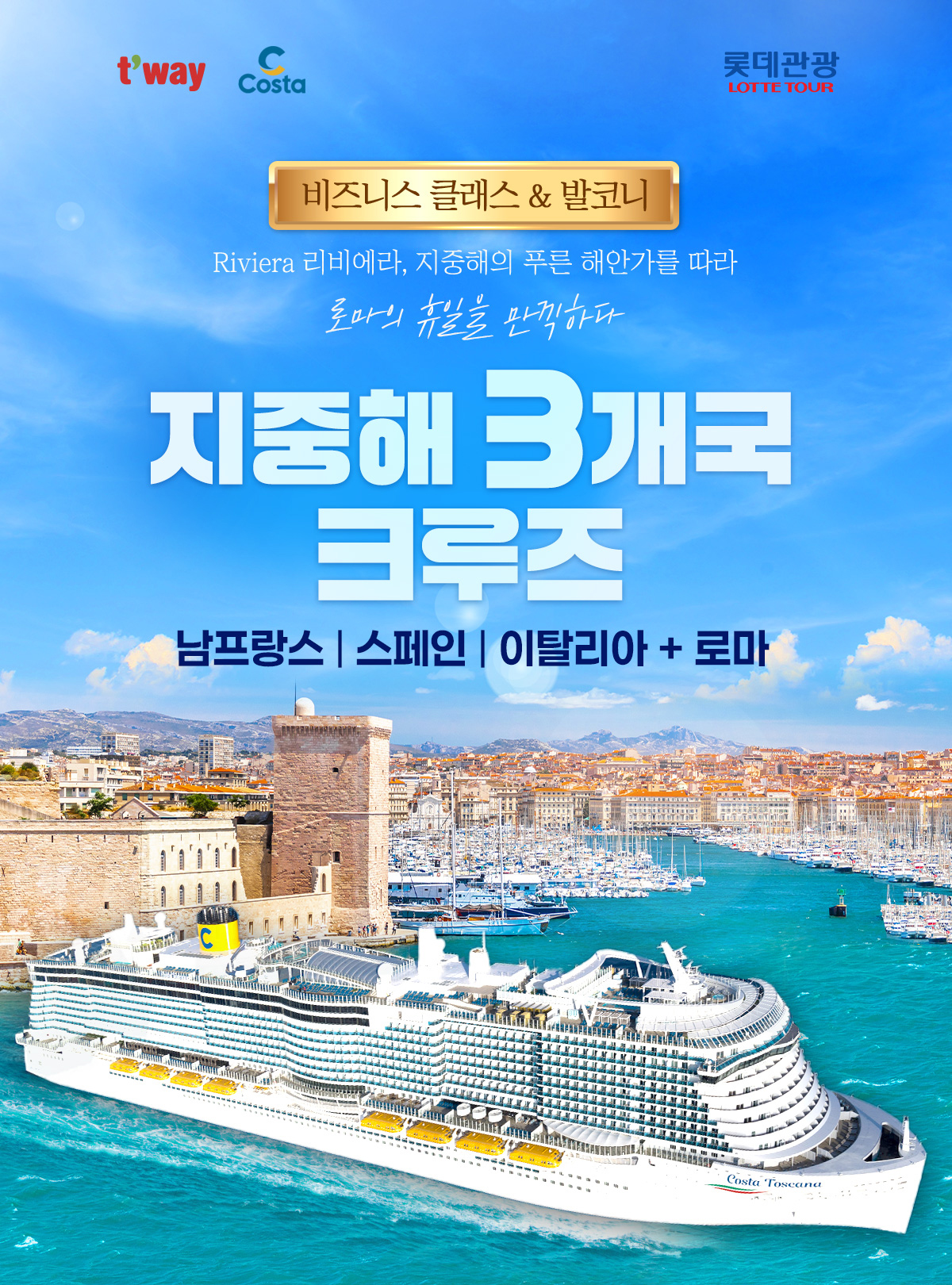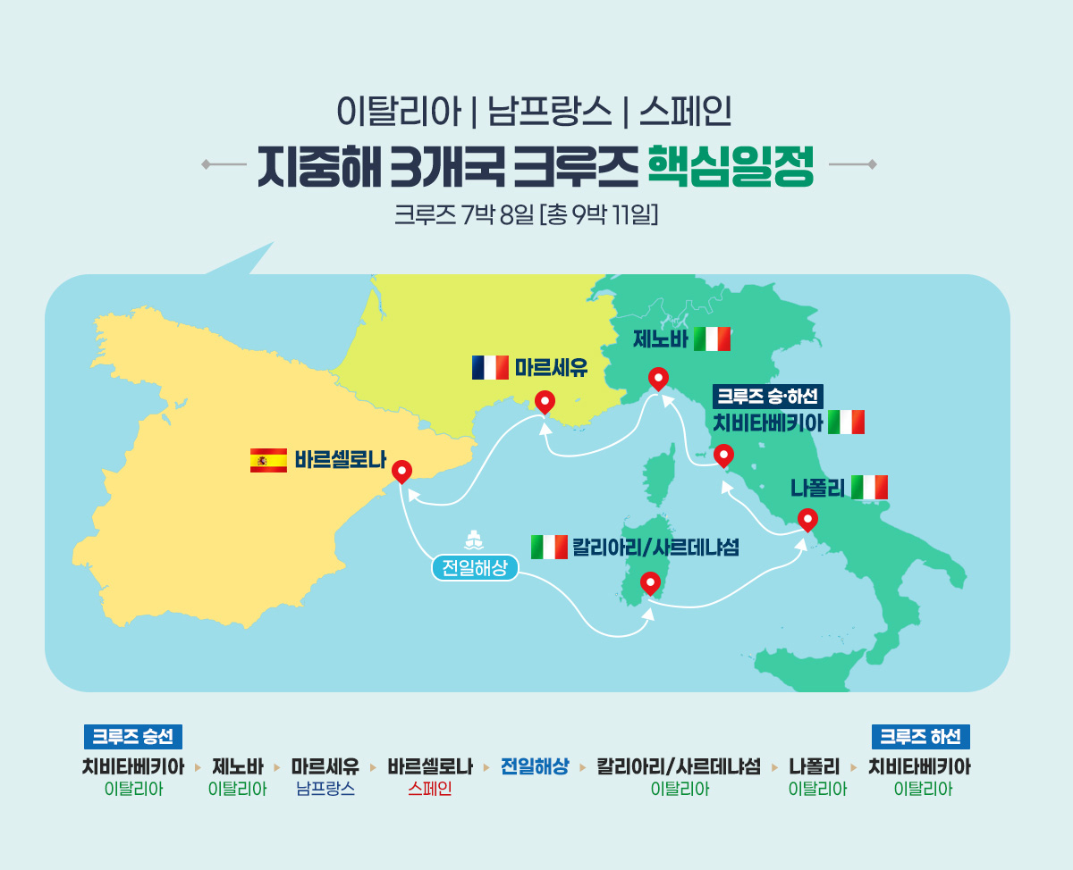 【비즈니스/발코니】【미슐랭가이드 등재/특식】사르데냐 섬+지중해 3개국 크루즈 11일(이탈리아/남프랑스/스페인) (COSTA & 티웨이항공)